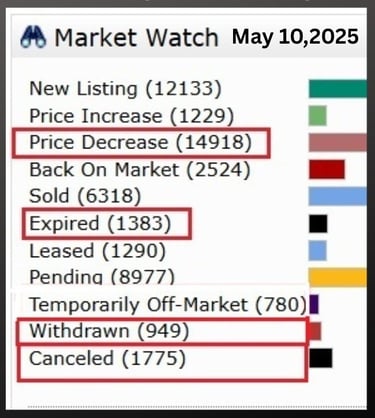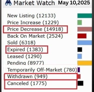 The Central FL real estate market, like many, fluctuates. Recently we are seeing a VERY high number of price decreases and homes failing to sell (expired, withdrawn, canceled). More time on market usually costs the seller in time and money, and often (usually?) results in a lower final price for the home.